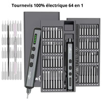 Tournevis électrique multifonction Deer Fairy 68 en 1 en acier S2, idéal pour les réparations de précision. Compact, puissant et livré avec un support de rangement pour vis.